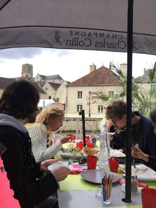On the road again, we caught up with the other car in Essoyes. They had chosen the perfect bistro on the river for lunch. I very much enjoyed duck confit with a fresh salad and sharing a creme brûlée, my first one here.